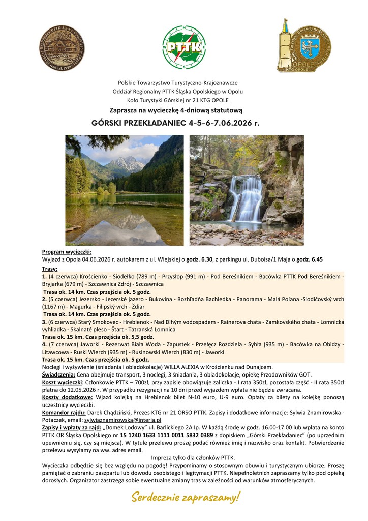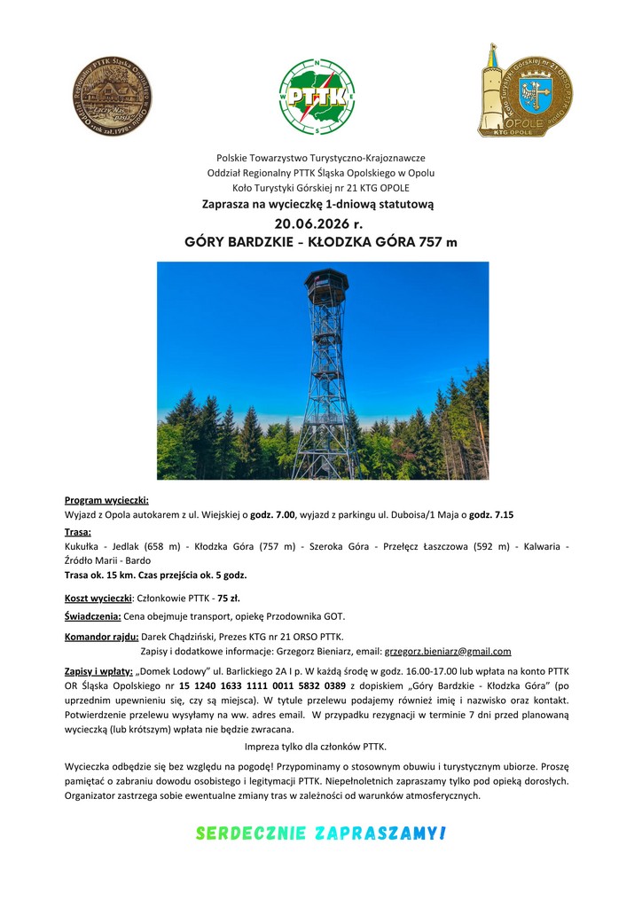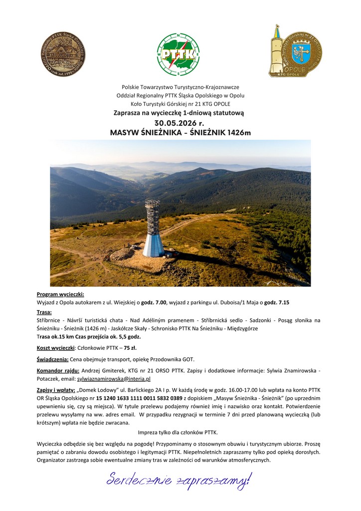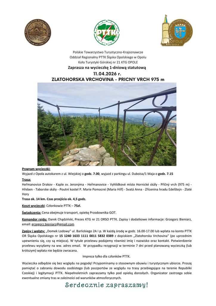 Na podstawie Uchwały nr 10/2026 Zarząd Oddziału Regionalnego PTTK Śląska Opolskiego zwołuje Zjazd Oddziału. Wydarzenie odbędzie się w dniu 18 kwietnia 2026 roku o godzinie 10:00 w Sali Orła Białego…
